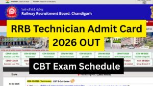 RRB Technician Admit Card 2026 OUT – CBT Exam Schedule, Direct Download Link and Key Instructions