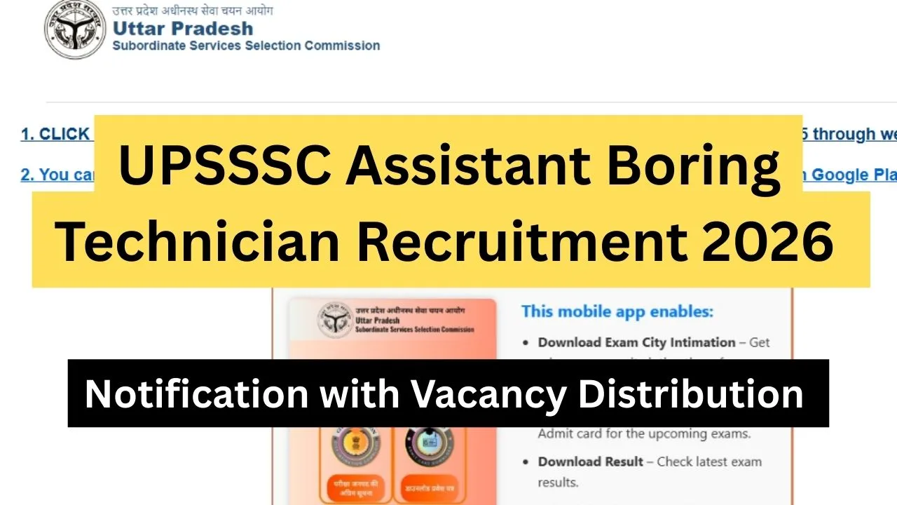 UPSSSC Assistant Boring Technician Recruitment 2026: The Uttar Pradesh Subordinate Services Selection Commission has recently announced an official recruitment notification for the Assistant Boring Technician positions in the Minor Irrigation Department. The total number of Assistant Boring Technician positions is 402. The official notification for this recruitment is available as of 16th March 2026. The online applications for this recruitment will be available as of 15th April 2026. Interested candidates who have appeared in PET 2025 can apply for this recruitment through the official website before 5th May 2026. This is a great job opportunity for those who want a stable job in the government sector with a salary in Pay Level 2 and other benefits as per the state government norms. The selection criteria for this recruitment include shortlisting based on PET and a mains written examination. Interested candidates must have the required educational qualifications for this recruitment, i.e., High School and ITI. This specific blog contains all the verified information regarding UPSSSC Assistant Boring Technician Recruitment 2026 and the details related to it.